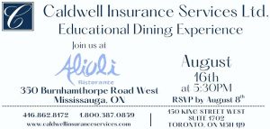 Caldwell Insurance Dinner Presentation on 16th August, 2022 Aug 17, 2022 By Admin Date and Time: 16 Aug 2022, 5:30 PM EDT Day: Tuesday Venue: Alioli Ristorante, 350 Burnhamthorpe Road West, Mississauga, ON L5B ...
