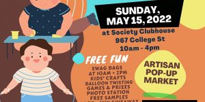 FREE COMMUNITY EVENT- Family Day Market, Crafts & More at Society Clubhouse on May 15, 2022 May 14, 2022 By Admin Date and Time: 15 May 2022, 10:00 AM – 4:00 PM EDT Day: Sunday Organized By: Solara Communications Venue: 967 College St, ...