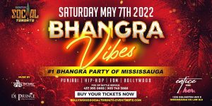 BHANGRA VIBES | A Premium Punjabi Party on May 7, 2022 May 06, 2022 By Admin Date and Time: May 7, 2022, 10:00 PM – 2:30 AM EDT Day: Saturday Organized By: Bollywood Social Toronto Venue: ENTICE ROOM ...