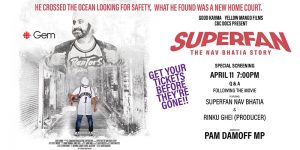 Superfan: The Nav Bhatia Story Screening – Pam Damoff MP on April 11, 2022 Apr 10, 2022 By Admin Date and Time: 11 April 2022, 7:00 PM – 10:00 PM EDT Day: Monday Organized By: Pam Damoff MP Venue: Film.Ca Cinemas, ...