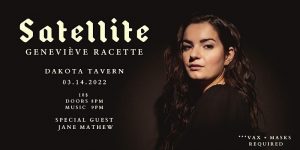 Geneviève Racette with Jane Mathew on March 14, 2022 Mar 14, 2022 By Admin Date and Time: 14 Mar 2022, 8:00 PM EDT Day: Monday Organized By: Legacy Entertainment Venue: The Dakota Tavern, 249 Ossington Avenue, ...