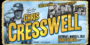 Chris Cresswell and friends Acoustic Show at the Hard Luck Bar on March 4, 2022 Feb 28, 2022 By Admin Date and Time: 5 Mar 2022, 8:00 PM – 1:00 AM EST Day: Saturday Organized By: Hard Luck Bar Venue: Hard Luck ...