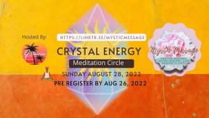 Solar Crystal Energy Meditation Circle on 28th August, 2022 Aug 29, 2022 By Admin Date and Time: August 28 2022 at 8:30 pm Day: Sunday Venue: Sabuccos Dance Company, 12 Peter Street South,Mississauga,ON,Canada, Mississauga, Canada Mystic ...