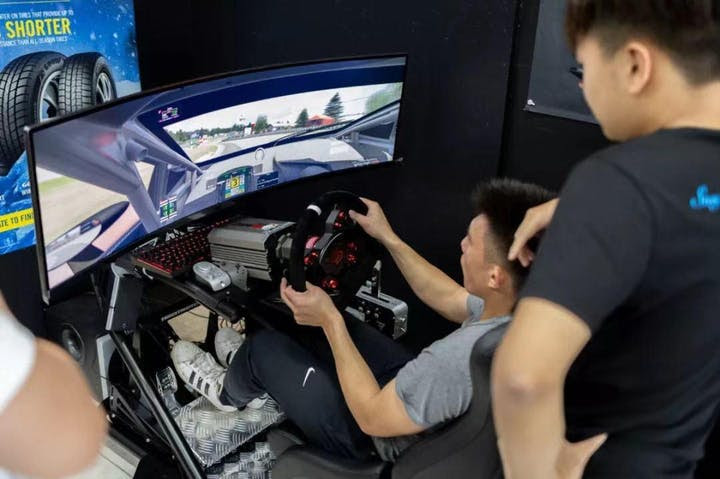 5. Free Professional racing simulators competition to win 2 $600 cost AIM SOLO 2 GPS lap timer (For 2 days). Sim race in the time attack format on YD-Motorsports’ pro-level $10,000 cost direct drive simulator to see who has the fastest lap time. (Assetto Corsa, using Porsche GT4 Clubsport on CTMP GP Track, each driver one lap, first come first race).